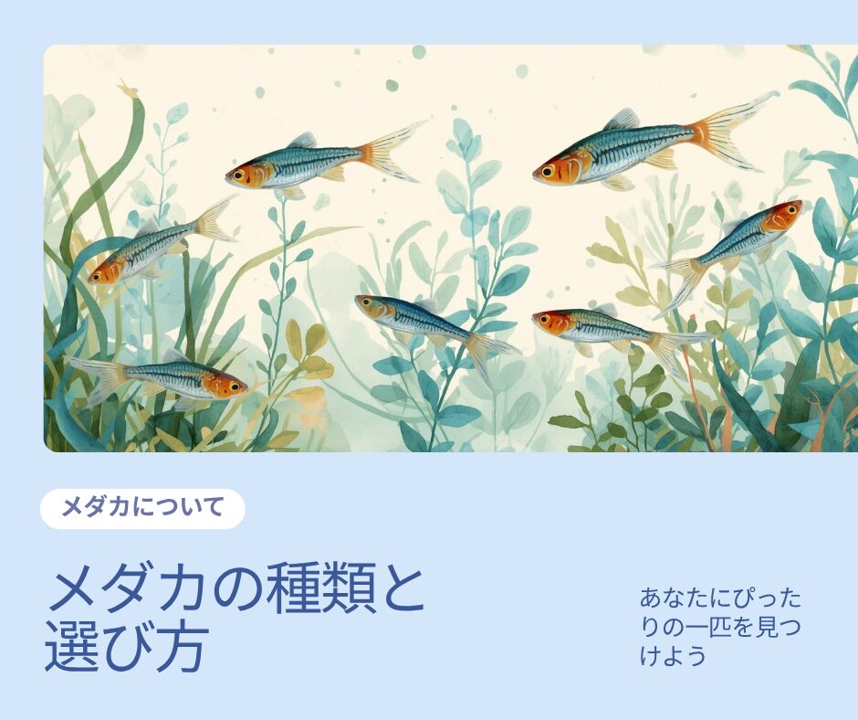 初めてメダカを飼う方には、楊貴妃メダカや黒メダカなど、丈夫な品種をおすすめしています。慣れてきたら珍しい品種にも挑戦してみてください。